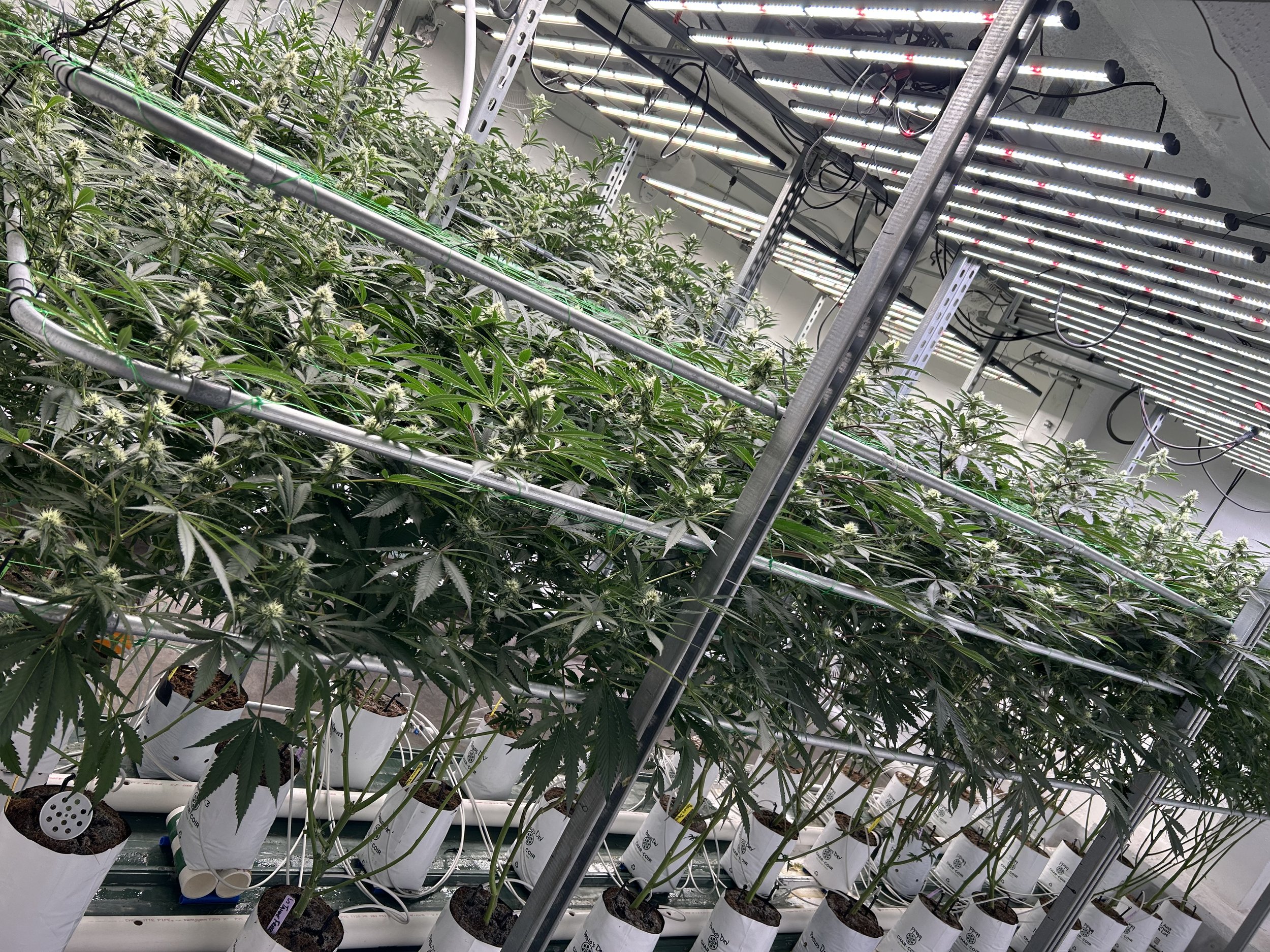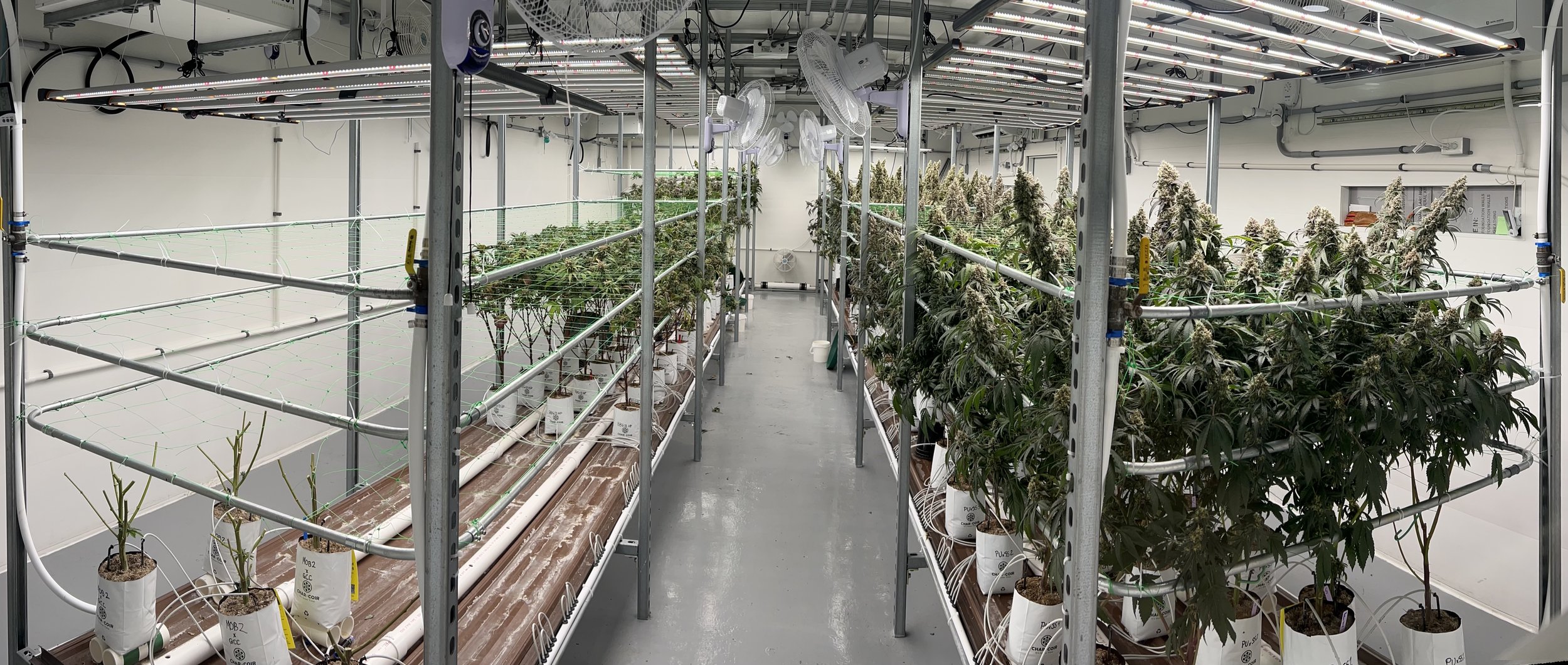 A view of plants in F0A Flower Room in week 4.