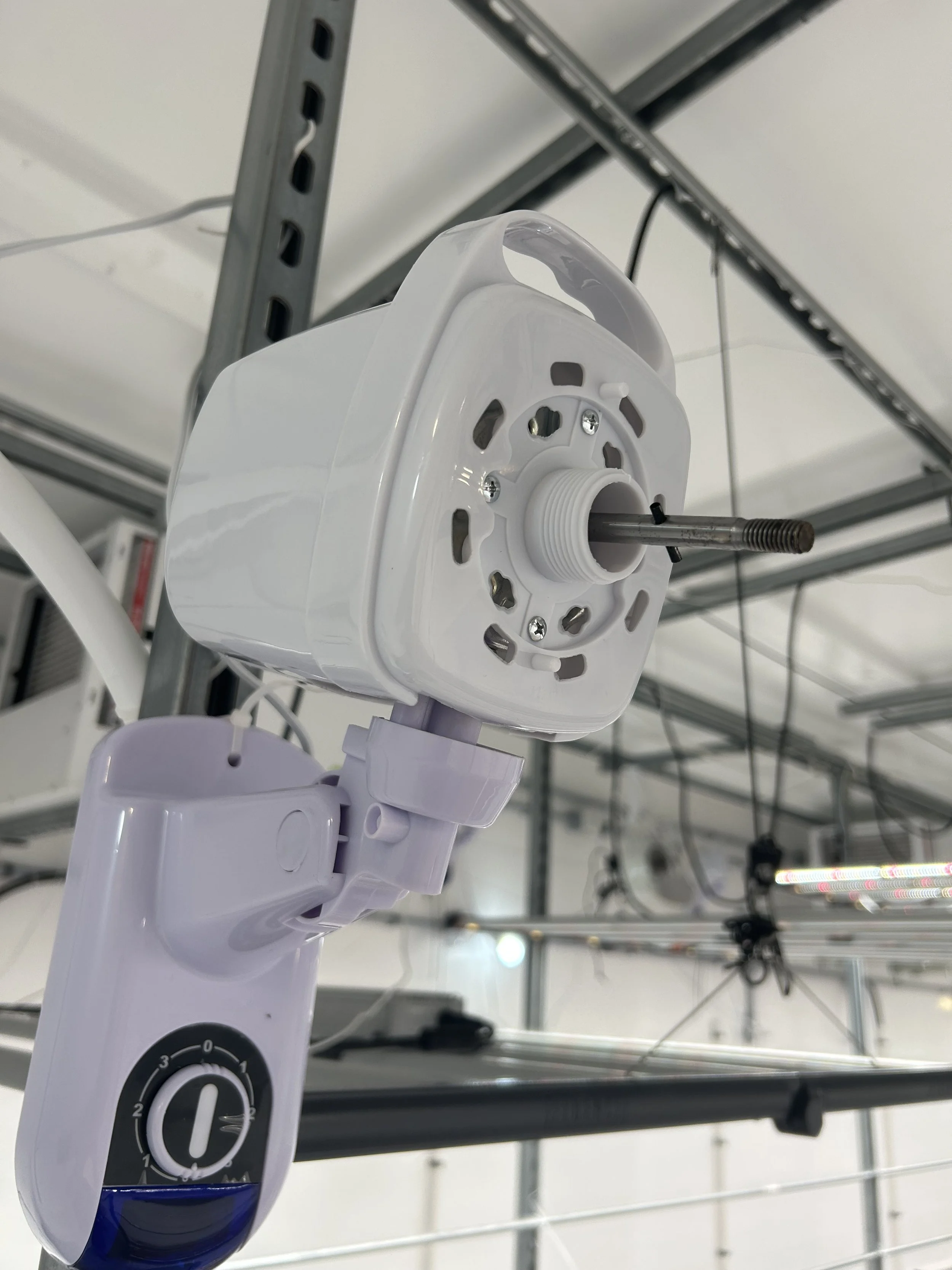 Every Fan is disassembled, cleaned and sanitized. We do this to every square inch of the room. Ceiling, walls, floors, fixtures, fans , tables, dehumidifiers, air conditioners, lights and even the power cords are cleaned and sanitized to assure the next run has the best chance at success. It is a painstakingly long procedure and takes a crew multiple days to accomplish. 100% essential.