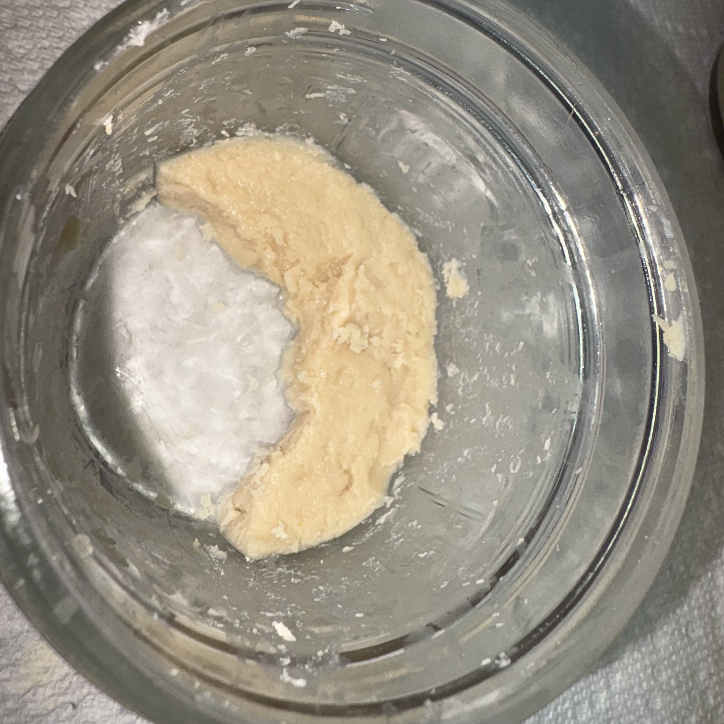 Super Boof - 2 week Jar Tech showing the terpene separated top layer and crystalline THCA crystals formed below.